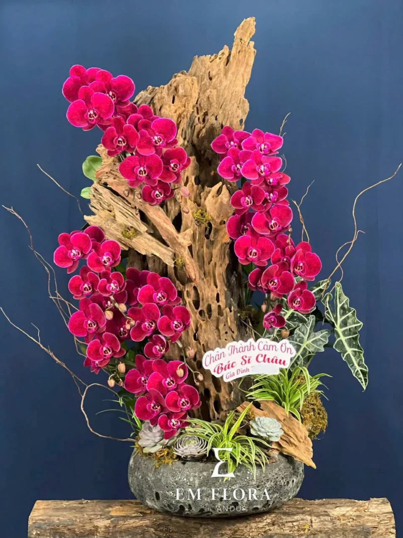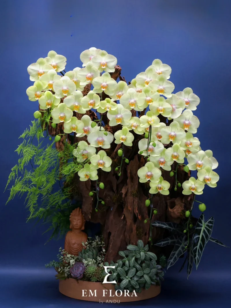 Điều độc đáo và khác biệt nhất ở dòng Lan Tiểu Cảnh nhà Em Flora chính là thực sự làm nổi bật sự tinh tế trong việc kết hợp các yếu tố tự nhiên.